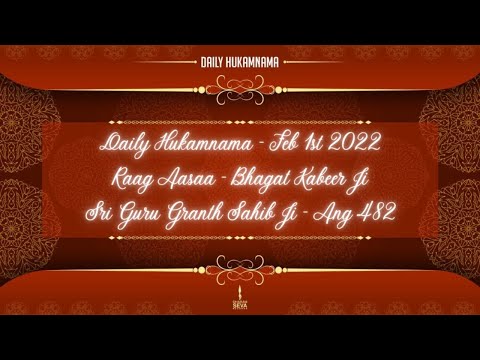 Dharam Seva Records – A Non Profit Label. Daily Hukamnama Sri Harmandir Sahib, Amritsar, Feb 1, 2022 Raag Aasaa – Bhagat Kabeer