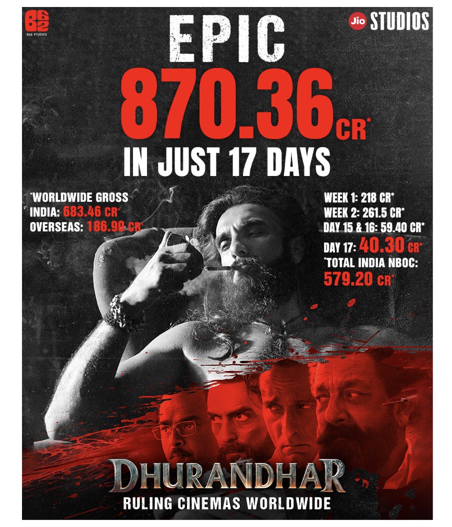 A defining moment for Indian cinema, Jio Studios & B62 Studios’ Aditya Dhar directorial stands tall as a once-in-a-lifetime blockbuster, driven purely by audience love and historic word of mouth. Dhurandhar hasn’t just broken records; it has redefined what’s possible at the global box office.