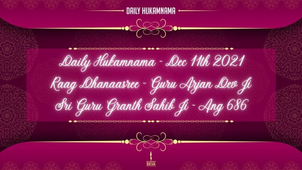 Daily Hukamnama, Dec 11th 2021 Raag Dhanaasree – Guru Arjan Dev Ji – Sri Guru Granth Sahib Ji – 686