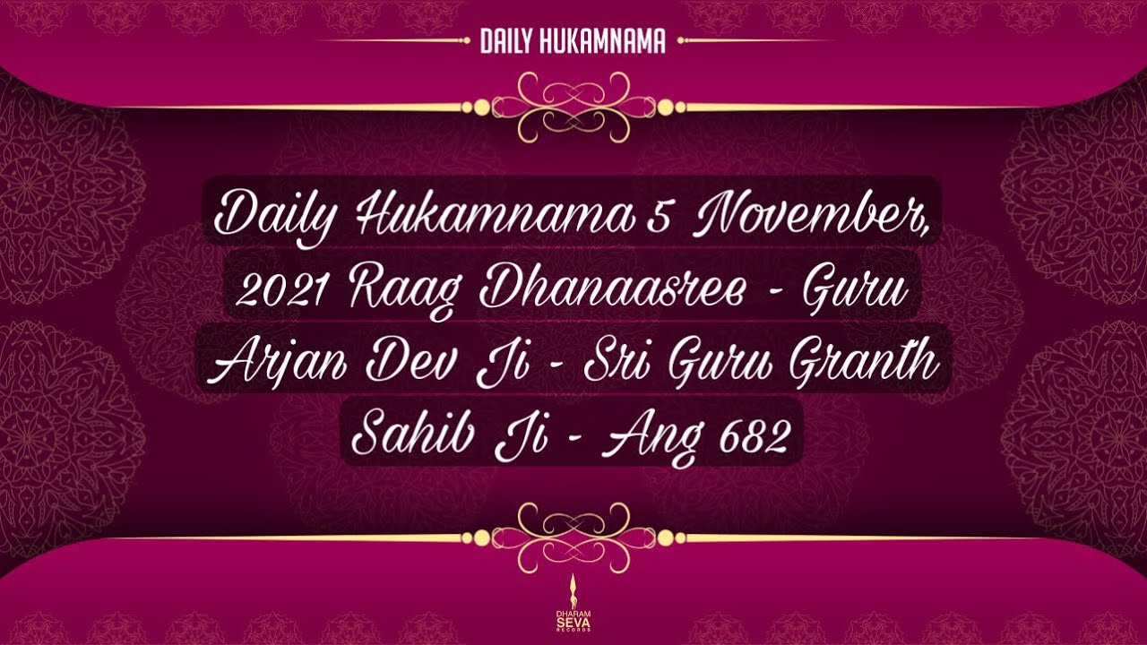 Daily Hukamnama Sri Harmandir Sahib, Amritsar, 5 November, 2021 Raag Dhanaasree – Guru Arjan Dev Ji – Sri Guru Granth Sahib
